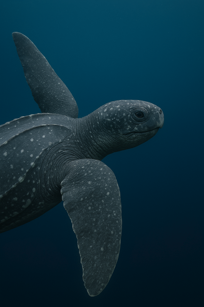 Most turtles hug coasts, reefs, or lagoons. The leatherback plunges into the abyssal twilight, routinely descending over 1,200 meters where sunlight dies and pressure could crush a submarine. Its body is adapted in ways scientists still puzzle over: collapsible lungs to withstand the squeeze, oxygen-rich blood to fuel dives, and a core that remains warm even in near-freezing waters. Unlike other reptiles, it is partly endothermic—an internal furnace in a cold-blooded frame.