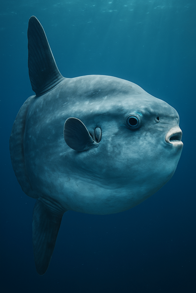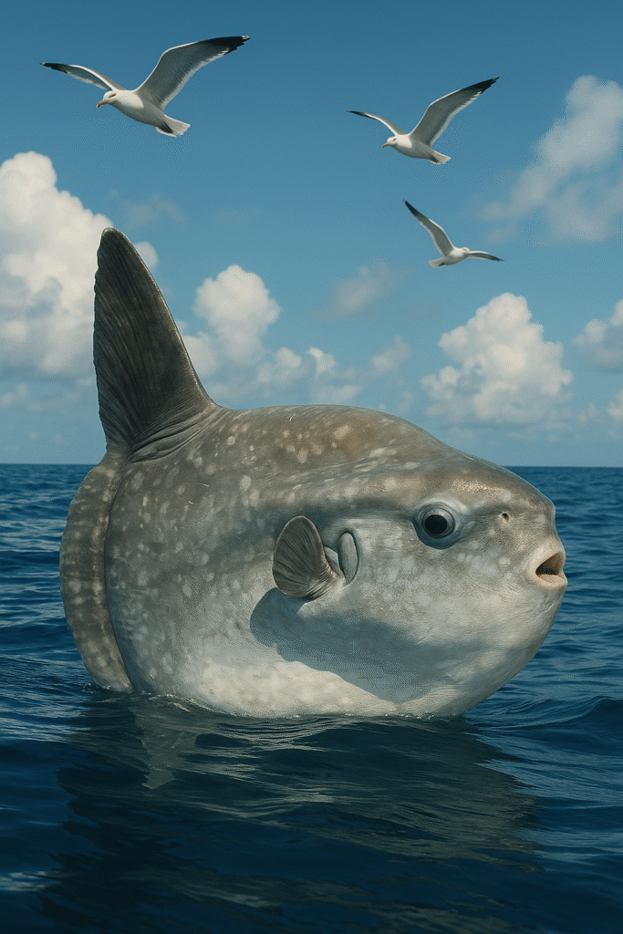 Imagine sailing across a calm sea when, suddenly, a massive, flat, disk-shaped creature drifts past the boat, lazily flapping fins like wings. Its body looks incomplete, as though evolution forgot to finish sculpting it. Fishermen describe it as a “swimming head.” Divers compare it to a living moon. Scientists call it Mola mola—the ocean sunfish.